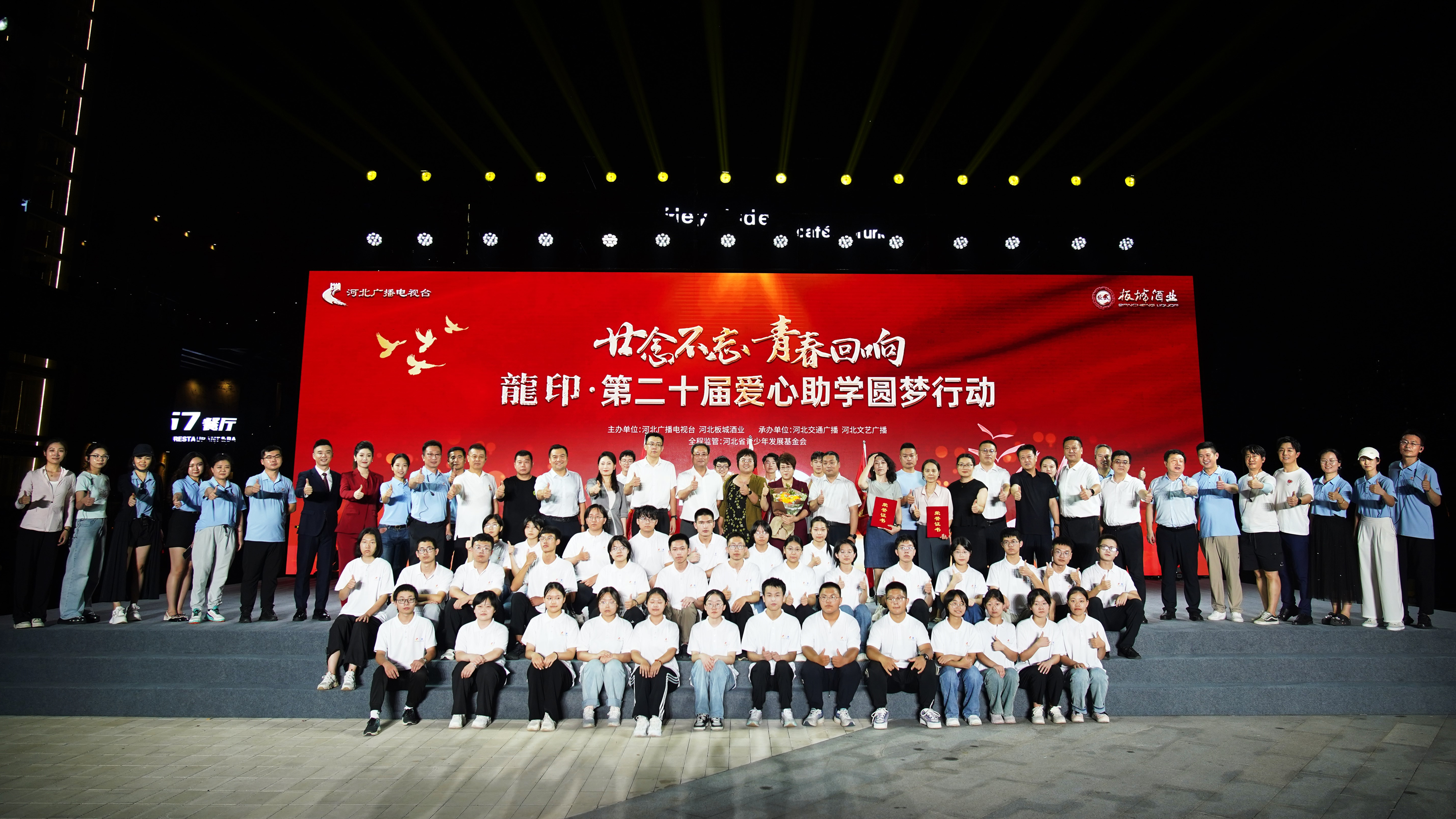 廿念不忘青春回響;8月8日,由板城酒業(yè)與河北廣播電視臺共同發(fā)起主辦的“廿念不忘青春回響”龍印·愛心助學圓夢行動二十周年公益盛典捐贈儀式在石家莊工業(yè)遺址公園圓滿舉行。