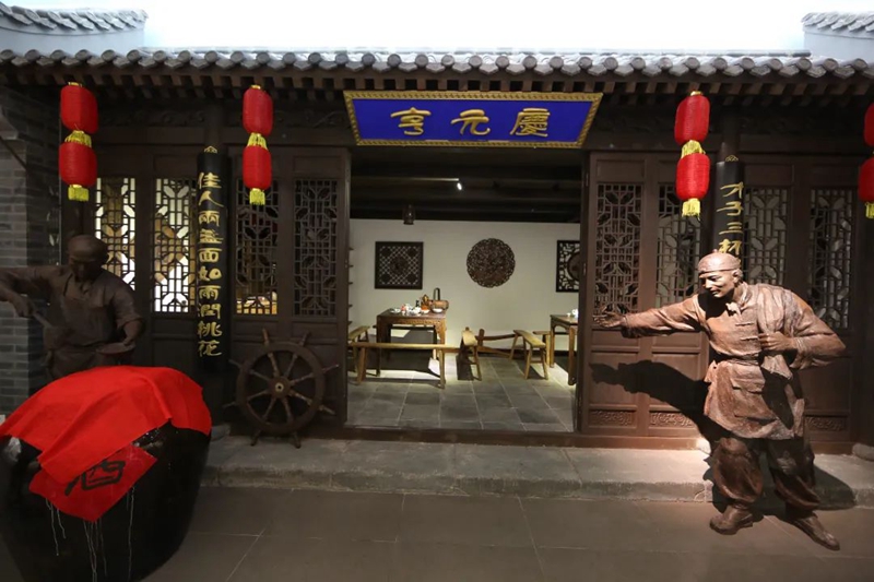 關(guān)闊先生說(shuō):慶元亨大門正面的影壁很壯觀,連影壁上的雕刻、文字都清清楚楚,大門橫批和兩邊的對(duì)聯(lián)都交代得非常清楚。匾額、對(duì)聯(lián)詞句之文雅,可以看出當(dāng)年的慶元亨除了興盛以外,還有一定的文化內(nèi)涵,求之今日而不可多得。