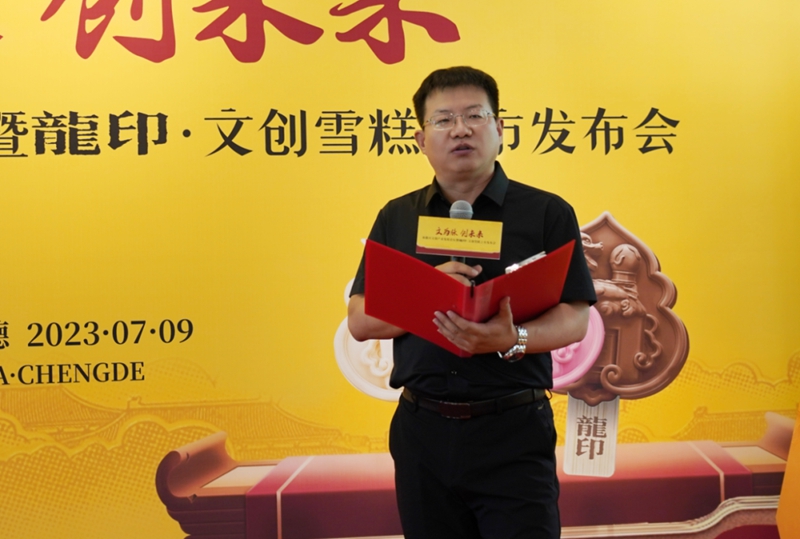 承德市總工會(huì)主席關(guān)繼高向前來參加本次發(fā)布會(huì)的各位領(lǐng)導(dǎo)、各位來賓表示熱烈的歡迎與衷心的感謝;本次承德市文創(chuàng)產(chǎn)業(yè)發(fā)展論壇旨在進(jìn)一步提升承德市文旅內(nèi)涵,激發(fā)文旅消費(fèi)潛能,對(duì)承德市皇家文化、飲食文化、酒文化、旅游康養(yǎng)文化進(jìn)行深入探討,促進(jìn)跨界融合,助力傳統(tǒng)文化創(chuàng)新表達(dá);板城酒業(yè)推出龍印·文創(chuàng)雪糕,必將為承德市文化、文創(chuàng)產(chǎn)業(yè)的繁榮發(fā)展以及建設(shè)國(guó)際生態(tài)旅游城市增添濃墨重彩的一筆;希望板城酒業(yè)能夠繼續(xù)秉承冀酒振興使命,為全力書寫“生態(tài)強(qiáng)市、魅力承德”現(xiàn)代化新篇章作出更大貢獻(xiàn)!