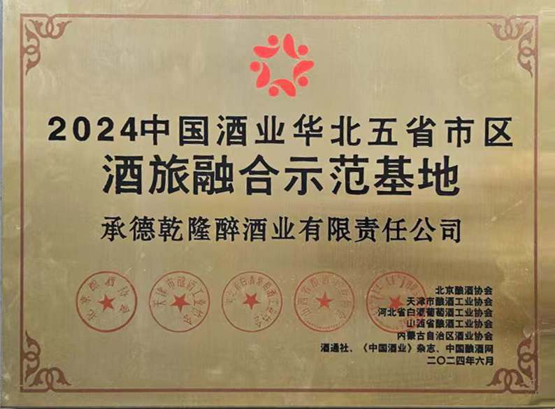 承德乾隆醉酒業(yè)(板城酒業(yè))在本次活動中榮獲“2024中國酒業(yè)華北五省市區(qū)·酒旅融合示范基地”的榮譽稱號。此項榮譽的獲得,是白酒行業(yè)與媒體對板城酒業(yè)酒旅融合新業(yè)態(tài)發(fā)展的肯定與鼓勵。