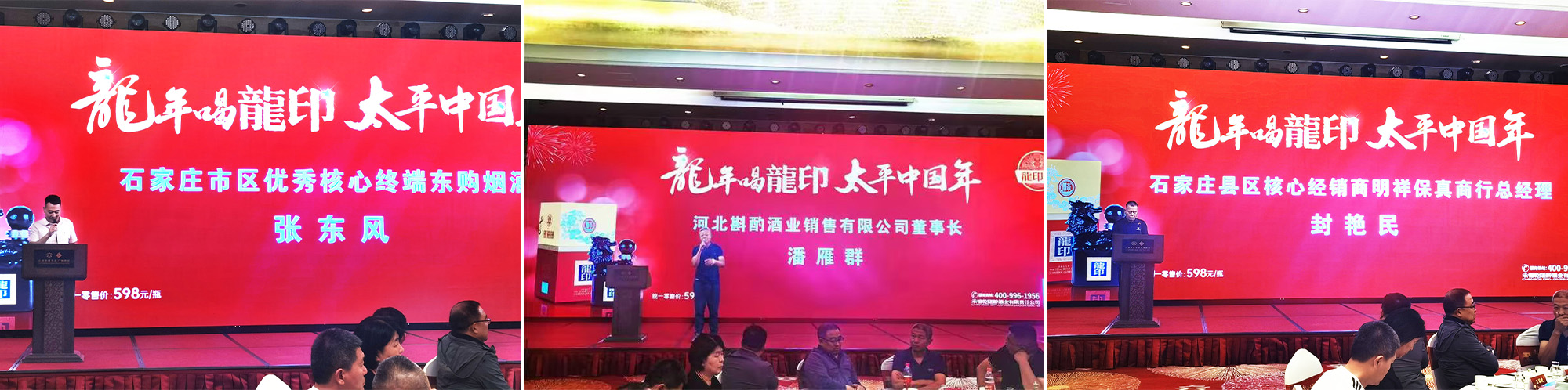 河北斟酌酒業(yè)銷售有限公司董事長(zhǎng)潘雁群,石家莊縣區(qū)核心經(jīng)銷商明祥保真商行總經(jīng)理封艷民,石家莊市區(qū)優(yōu)秀核心終端東購(gòu)煙酒商貿(mào)總經(jīng)理張東風(fēng)在活動(dòng)中相繼發(fā)表講話,他們強(qiáng)調(diào),龍印承載著板城酒業(yè)的歷史與文化,鑒證著皇家歷史與板城酒業(yè)釀酒歷史的交融與發(fā)展,未來將與板城酒業(yè)一道為石家莊的客戶提供濃郁醇厚的好酒,最真誠(chéng)的品質(zhì)服務(wù)。