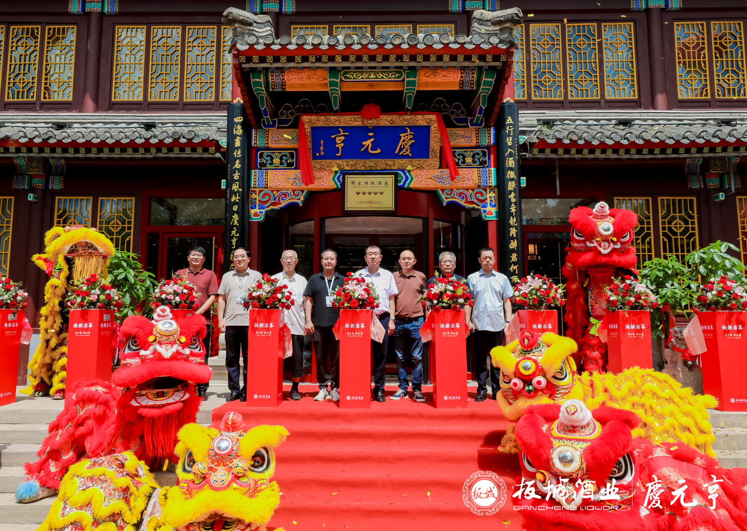震撼人心的舞獅表演后,河北板城酒業(yè)黨委書記、總經(jīng)理張春生;承德市工商聯(lián)副主席唐楠松;承德慶元亨餐飲有限公司董事長徐宏生;慶元亨老店第七代傳承人段士錚;國家商務(wù)部“中華老字號”保護(hù)發(fā)展工程專家郭會斌;承德市酒業(yè)協(xié)會理事長劉磊斌;承德市企業(yè)家聯(lián)合商會會長蔡靜;承德國鑫集團(tuán)董事長柴國;共同為承德慶元亨煥新啟幕剪彩。