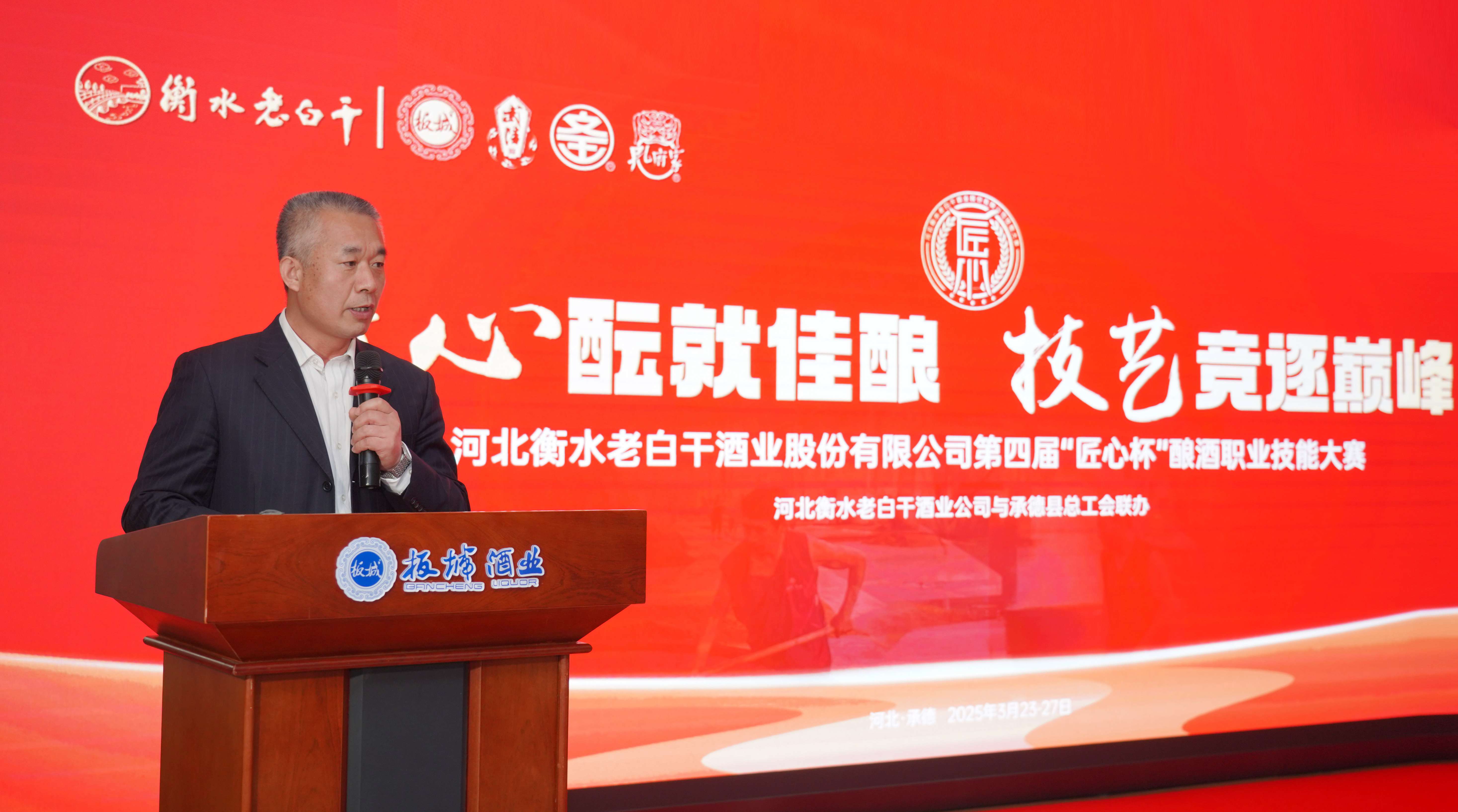 承德縣總工會(huì)黨組書記、常務(wù)副主席溫明忠在活動(dòng)中致辭,他講到:“此次‘匠心杯’釀酒職業(yè)技能大賽,是老白干酒業(yè)集團(tuán)為旗下五家酒業(yè)公司的‘技能大師’們搭建的切磋技藝、展示風(fēng)采、傳承精神的廣闊舞臺(tái)。每一位參賽選手都是各自企業(yè)的佼佼者,他們帶來的不僅是精湛的釀酒技藝,更是對(duì)釀酒事業(yè)的無限熱愛與執(zhí)著追求。通過這場比賽,大家相互學(xué)習(xí)、相互交流,在競爭中進(jìn)步,在切磋中成長,必將推動(dòng)酒行業(yè)整體水平的大幅提升。希望以此次大賽為新的起點(diǎn),進(jìn)一步弘揚(yáng)工匠精神,加強(qiáng)技術(shù)創(chuàng)新與研發(fā),為消費(fèi)者釀造出更高品質(zhì)的美酒,為中國酒業(yè)的發(fā)展注入新的活力。”