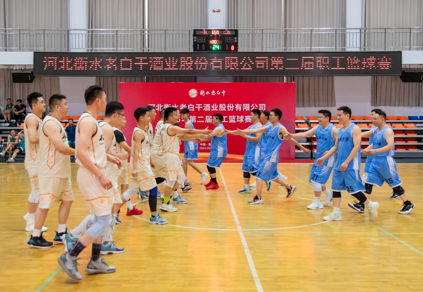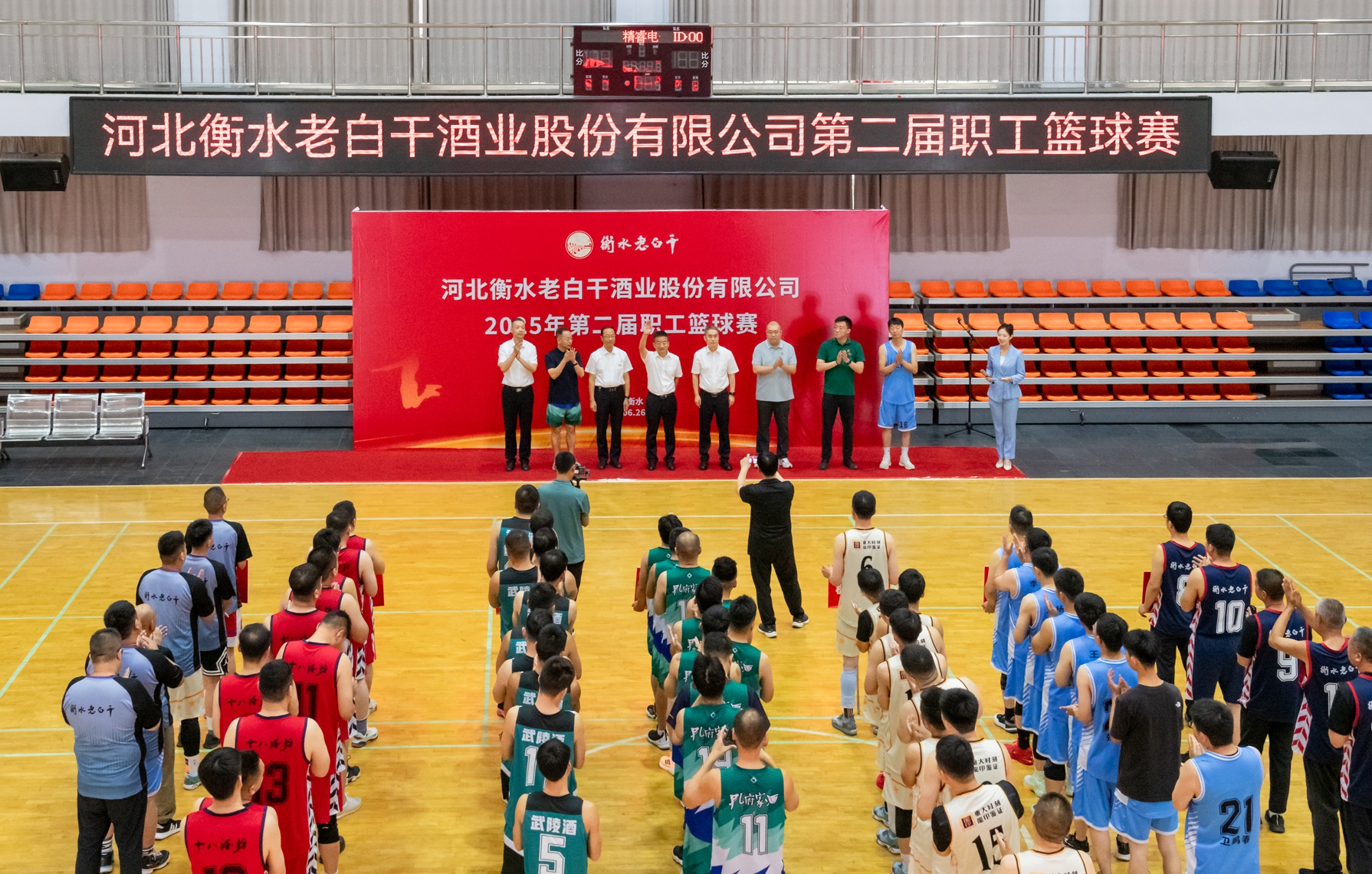 6月25-26日,河北衡水老白干酒業(yè)股份有限公司第二屆職工籃球賽在衡水圓滿落幕。來自衡水老白干酒業(yè)及其旗下板城酒業(yè)、孔府家酒業(yè)、武陵酒業(yè)、文王酒業(yè)等六支精英代表隊(duì)齊聚一堂,共同演繹了一場精彩絕倫的體育盛宴。