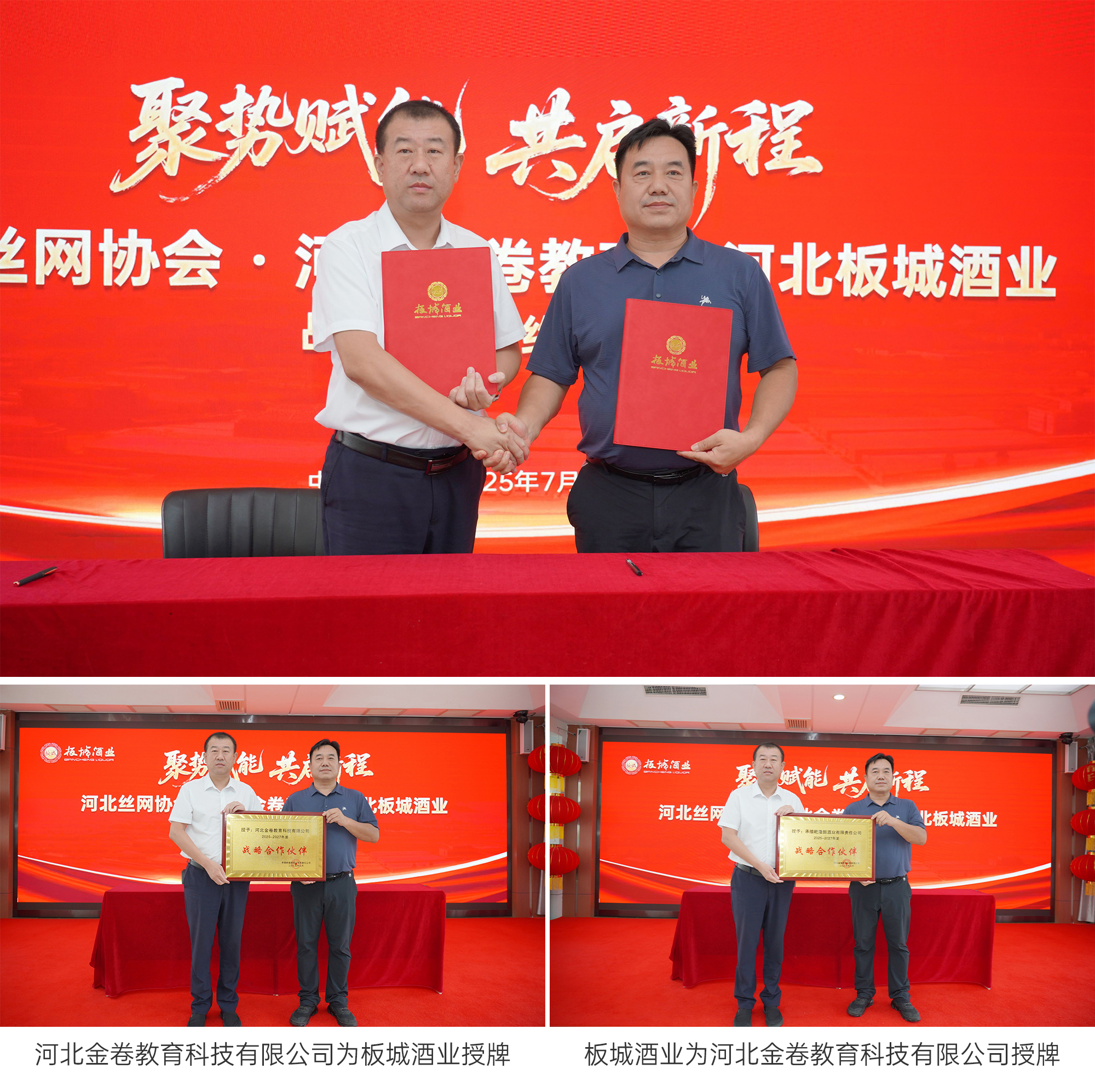河北金卷教育科技有限公司與板城酒業(yè)公司簽署戰(zhàn)略合作。