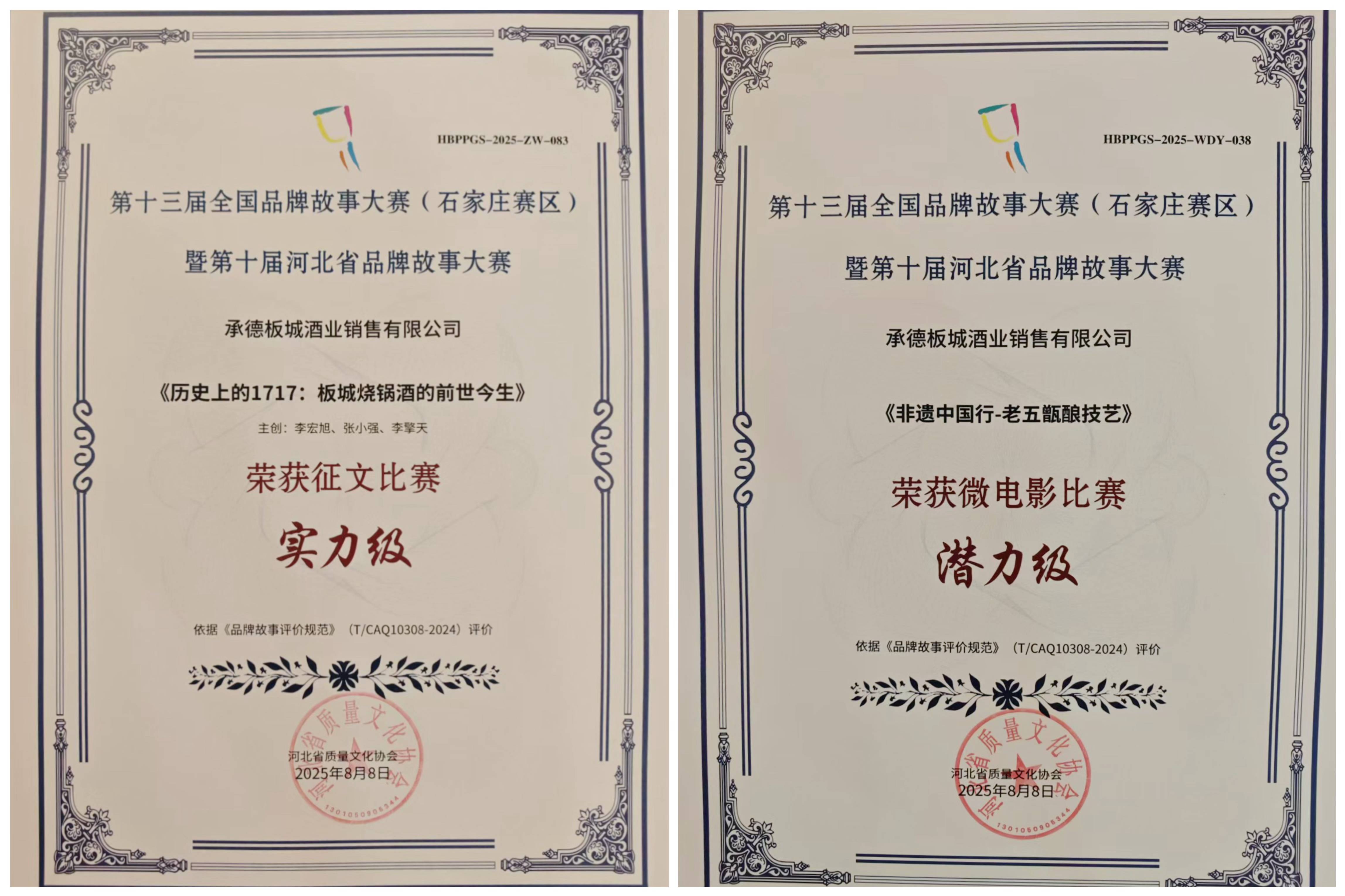 板城酒業(yè)憑借深厚的歷史底蘊(yùn)與創(chuàng)新的文化表達(dá),一舉斬獲雙項(xiàng)大獎(jiǎng)——《歷史上的1717:板城燒鍋酒的前世今生》榮獲征文比賽實(shí)力級(jí)獎(jiǎng)項(xiàng),《非遺中國行——老五甑釀造技藝》榮獲微電影比賽潛力級(jí)獎(jiǎng)項(xiàng)!這不僅是對(duì)板城酒業(yè)品牌敘事能力的肯定,更是對(duì)“老五甑”非遺技藝與三百年匠心傳承的高度贊譽(yù)。