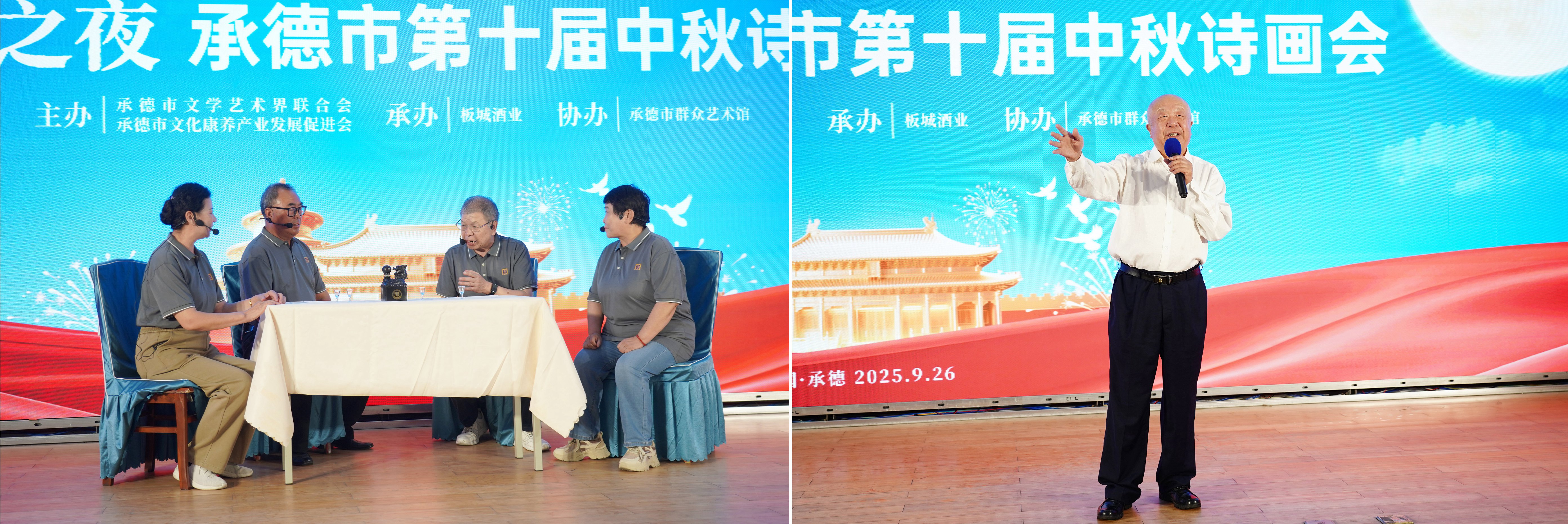 9月26日晚,由承德市文學(xué)藝術(shù)界聯(lián)合會、承德市文化康養(yǎng)產(chǎn)業(yè)發(fā)展促進會主辦;板城酒業(yè)承辦;承德市群眾藝術(shù)館協(xié)辦的“龍印之夜——承德市第十屆中秋詩畫會”在板城酒業(yè)隆重舉行。